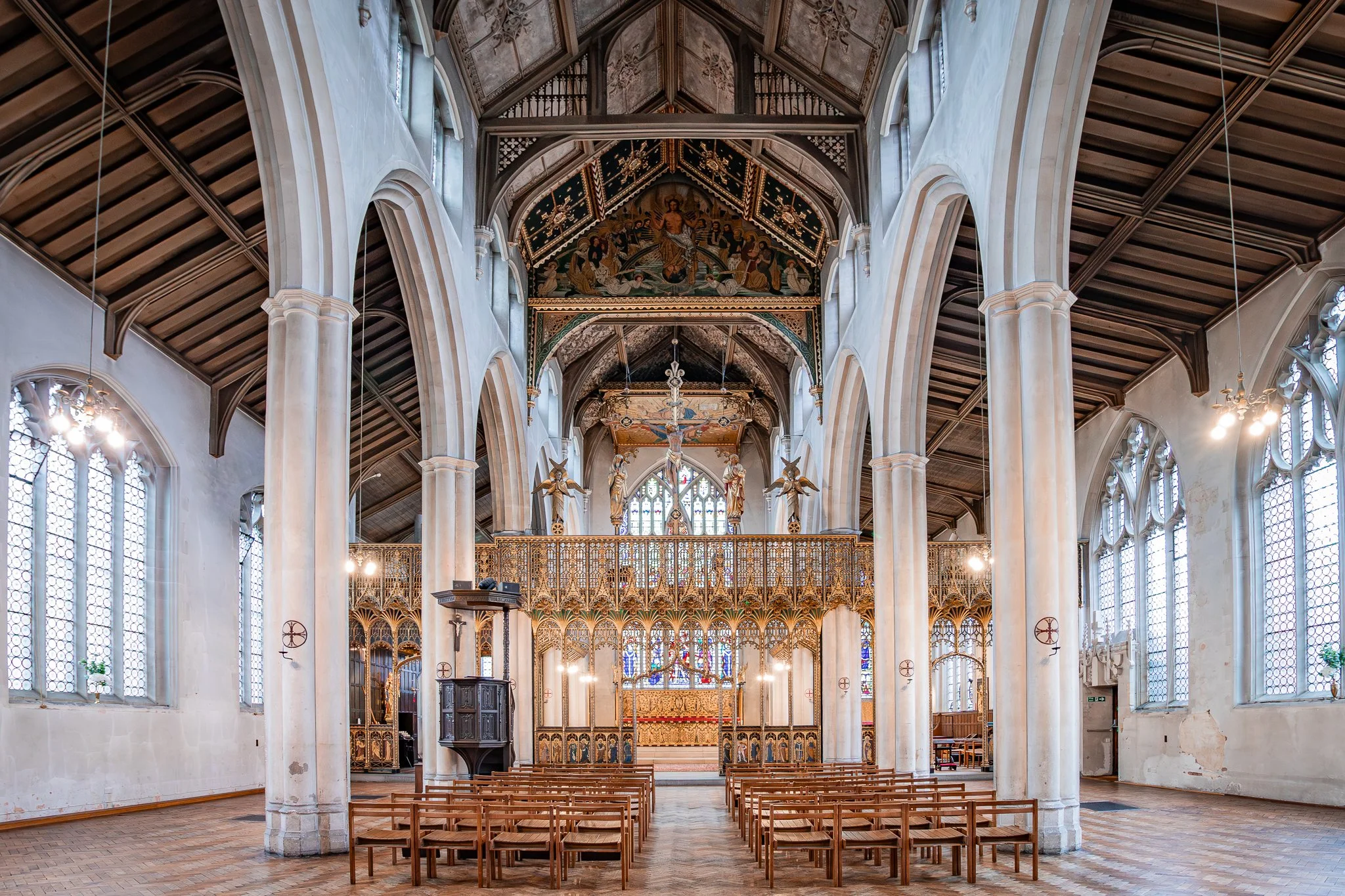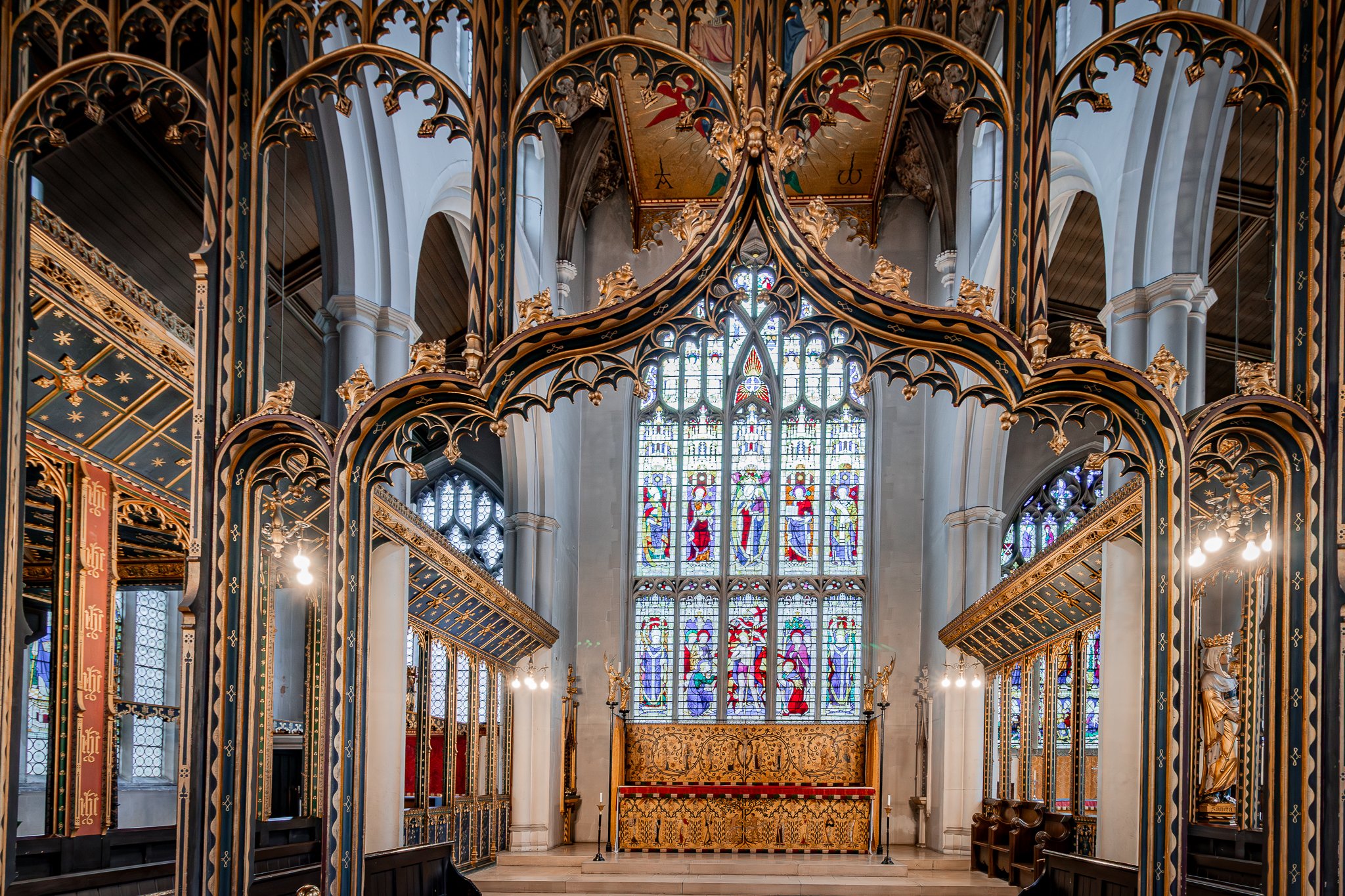 St Cyprian’s is celebrated as one of London’s finest Victorian Gothic churches. Designed by Sir Ninian Comper, the building is renowned for its painted ceilings, gilded rood screen, stained glass, and carefully ordered sense of sacred space.